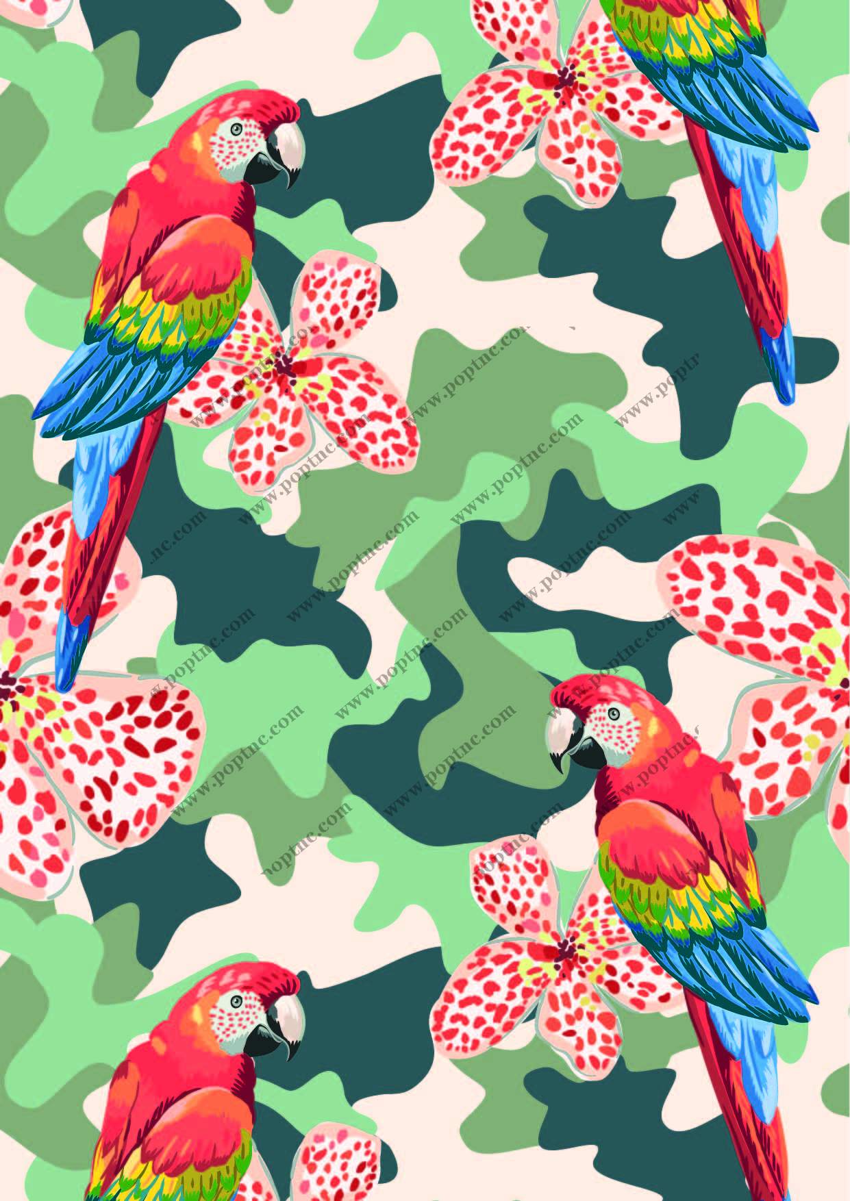 POP花型网 » 几何迷彩鹦鹉花朵拼接印花矢量图服装纺织面料数码印花花型素材