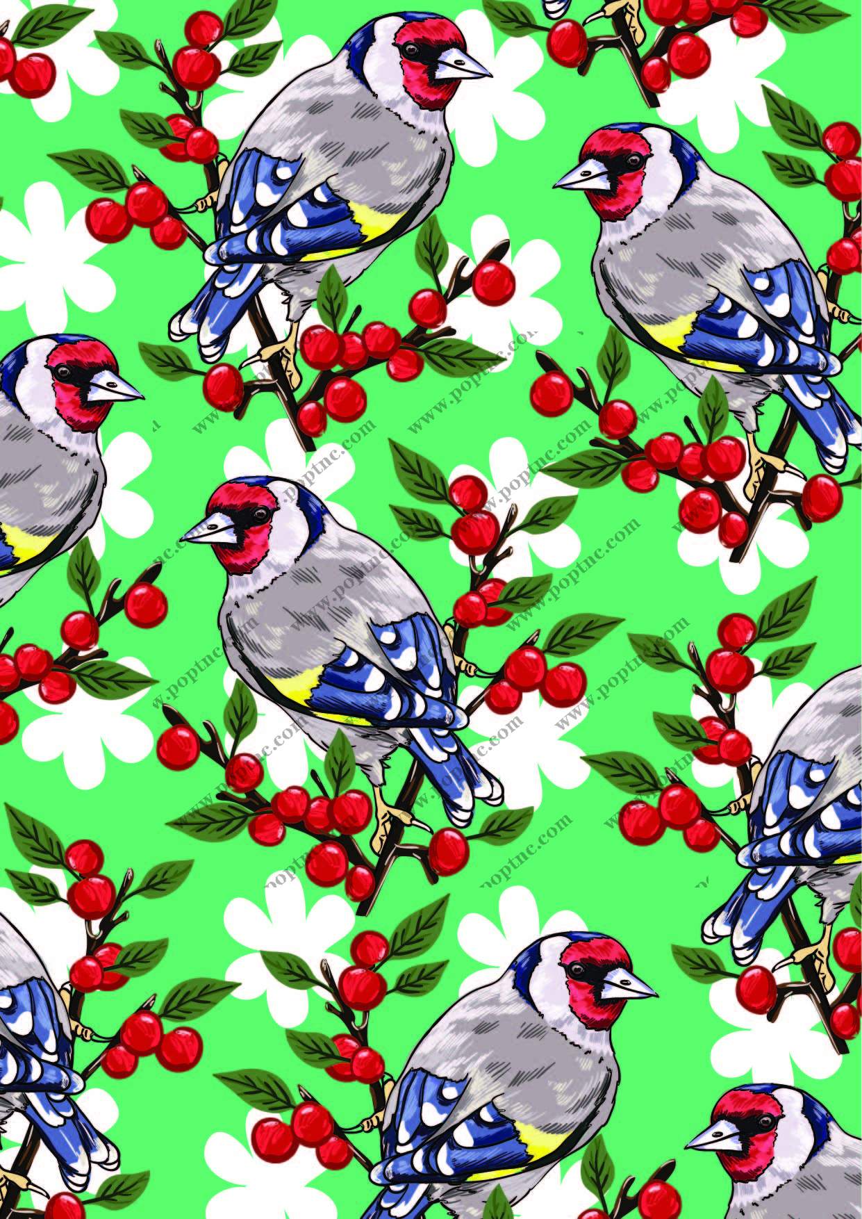 POP花型网 » 植物果实飞鸟拼接印花矢量图服装纺织面料数码印花花型素材