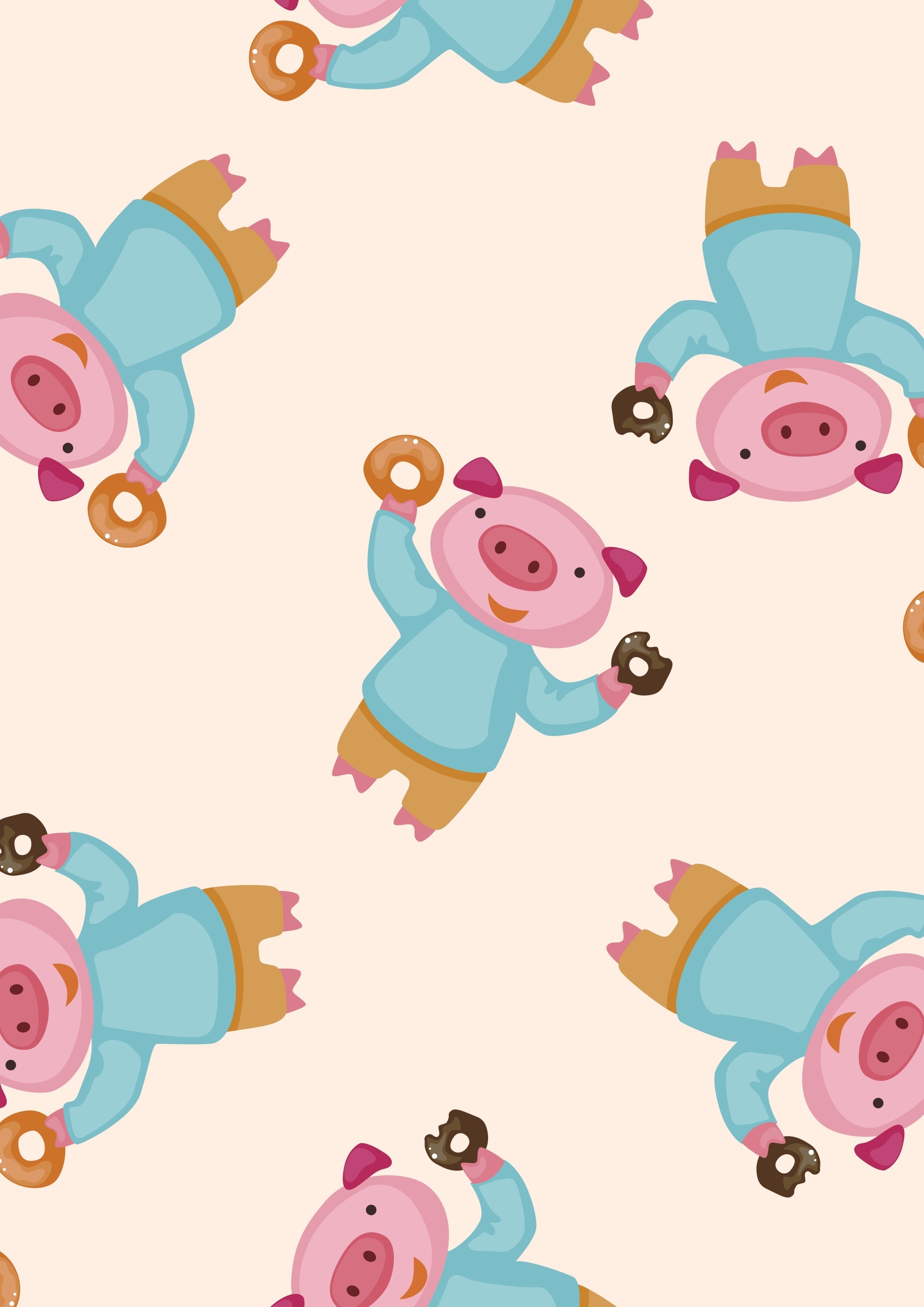 POP花型网 » 卡通图案卡通动物猪印花矢量图服装纺织面料数码印花花型素材