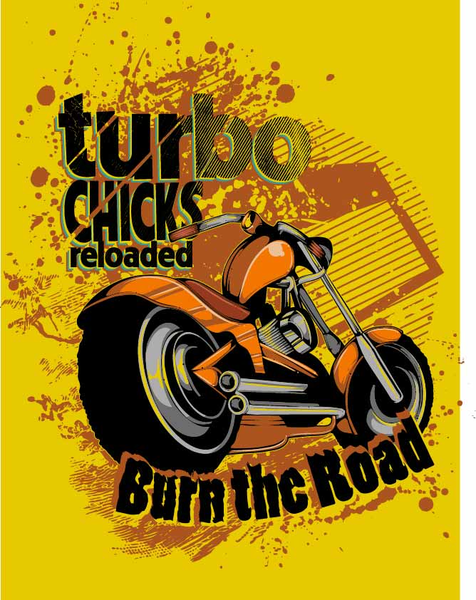 POP花型网 » 几何涂鸦字母摩托车印花矢量图服装裁片T恤印花花型素材