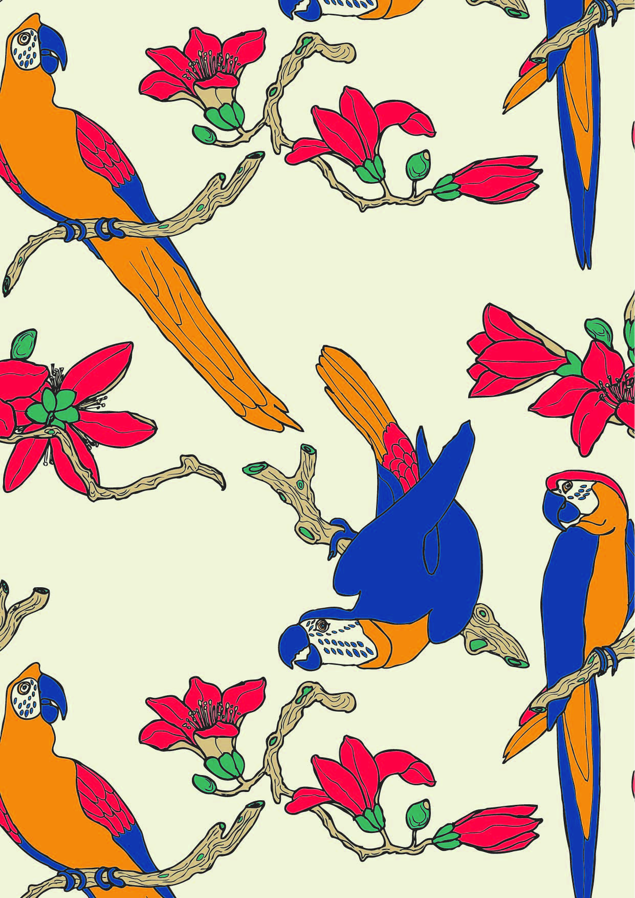 POP花型网 » 植物花卉动物鹦鹉印花矢量图服装纺织面料数码印花花型素材