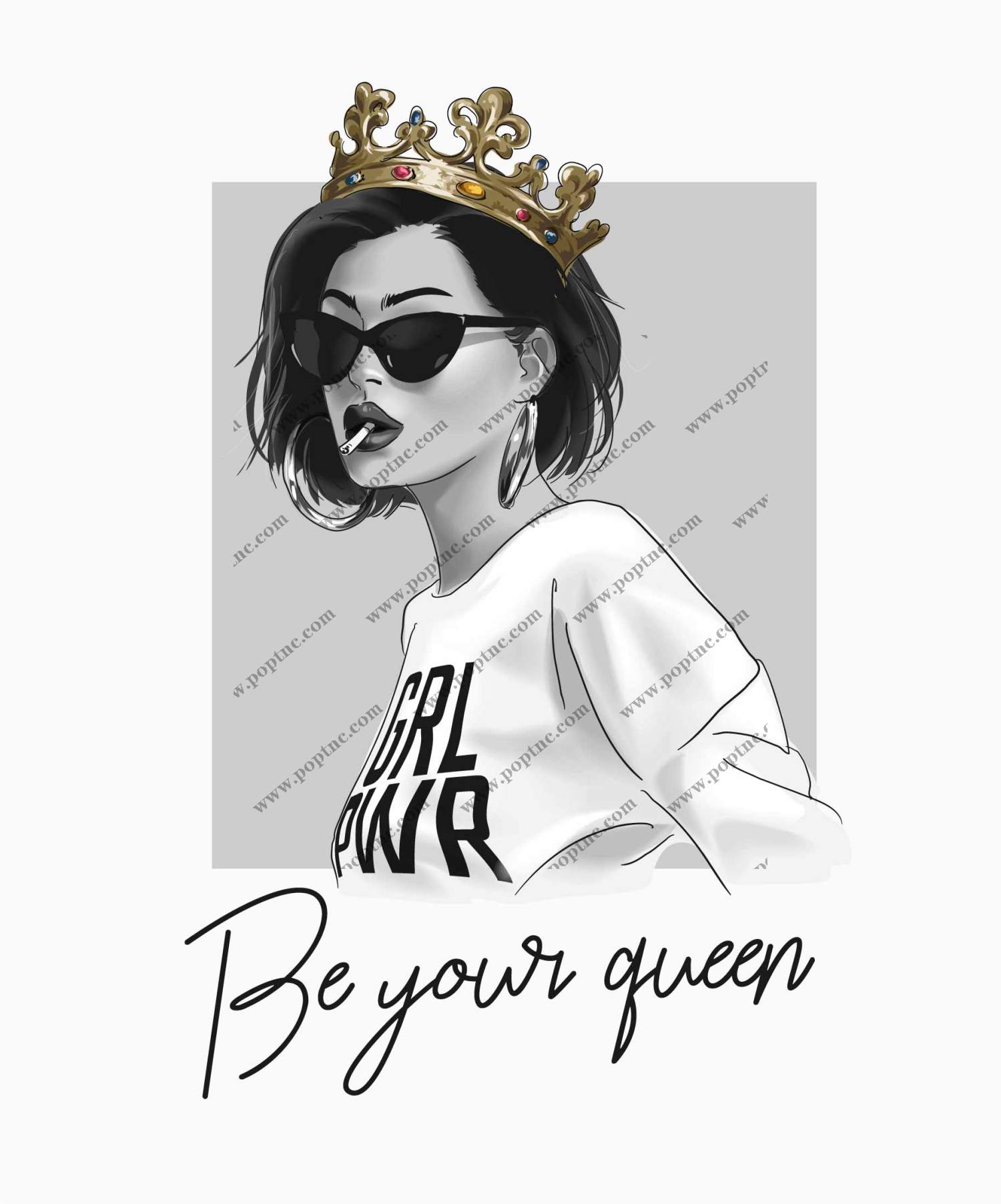 POP花型网 » 字母抽烟的女孩皇冠印花矢量图服装裁片T恤烫图印花花型素材