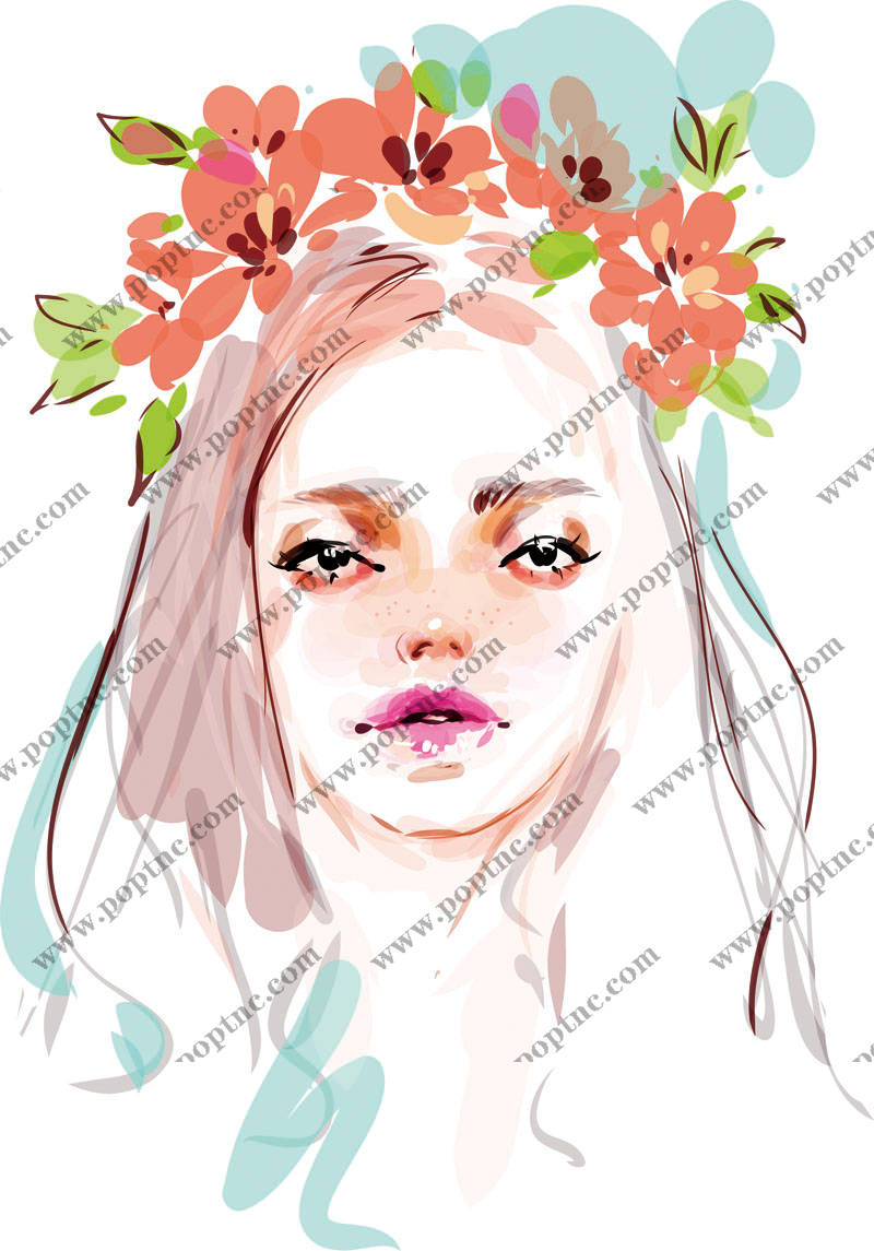 POP花型网 » 女士人物花卉背景印花矢量图服装裁片T恤烫图印花花型素材