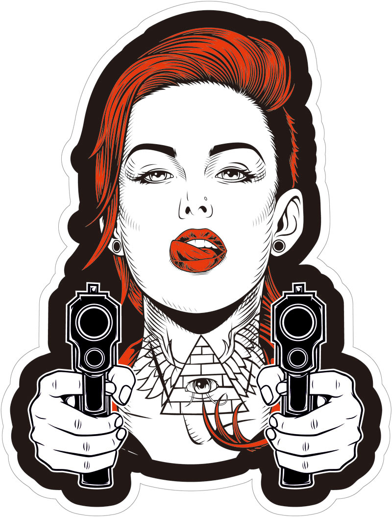 POP花型网 » 女孩人物手持双枪印花矢量图服装裁片T恤烫图印花花型素材