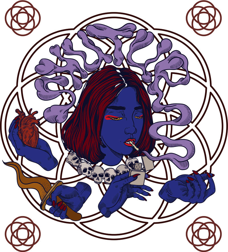 POP花型网 » 几何线条人物骷髅头印花矢量图服装裁片T恤烫图印花花型素材
