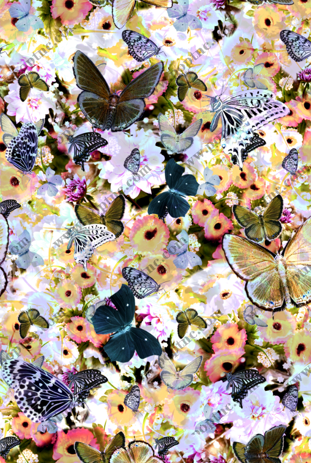 POP花型网 » 植物花卉菊花蝴蝶印花图案服装纺织面料数码印花素材