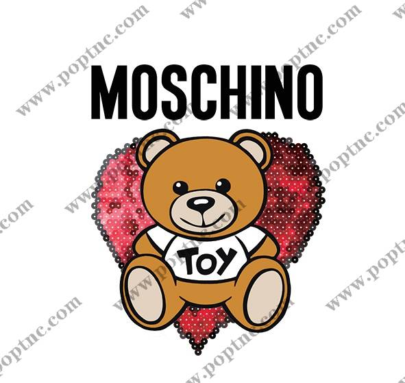 POP花型网 » 卡通潮牌MOSCHINO熊爱心印花矢量图服装裁片T恤烫图印花花型素材