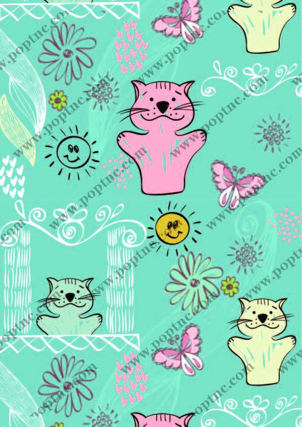POP花型网 » 卡通动物猫咪线条花朵蝴蝶印花矢量图服装纺织数码印花花型素材