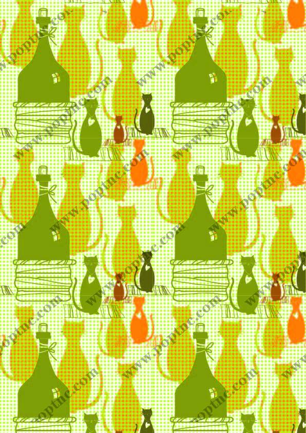 POP花型网 » 几何图案拼接格子猫咪酒瓶印花矢量图服装纺织数码印花花型素材