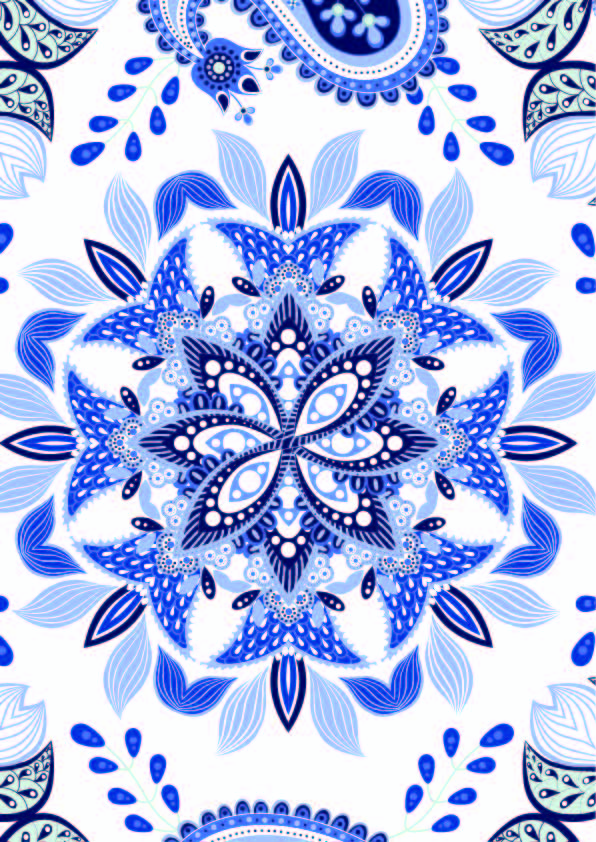 POP花型网 » 青花色复古花纹印花矢量图服装纺织数码印花花型素材