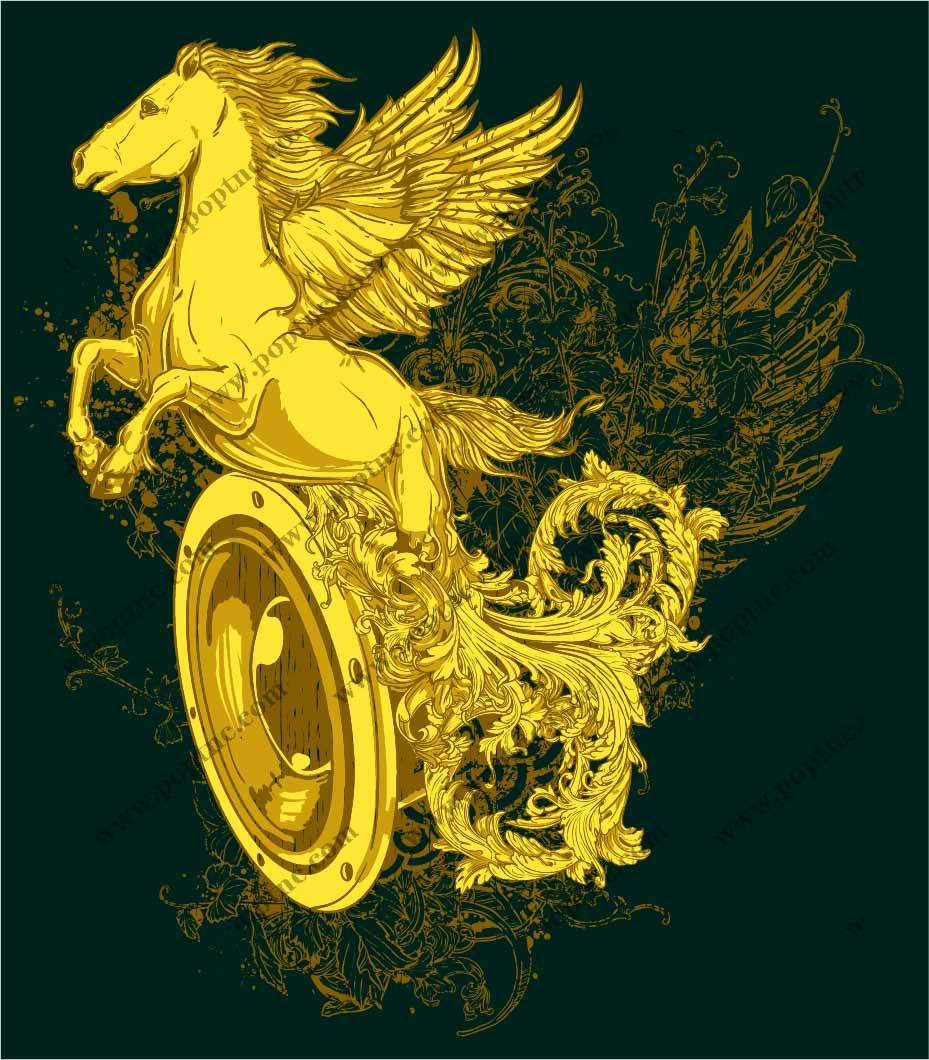 POP花型网 » 几何花纹金色飞马印花矢量图服装裁片T恤烫图印花花型素材