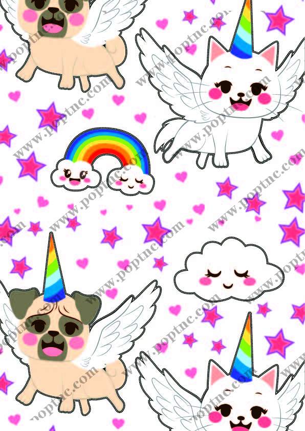 POP花型网 » 卡通动物猫咪小狗彩虹印花矢量图服装纺织数码印花花型素材