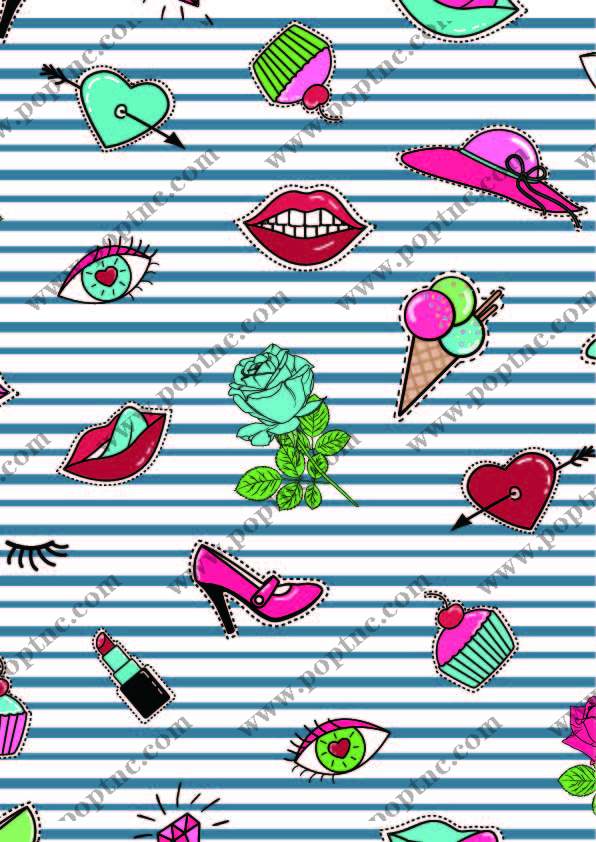 POP花型网 » 几何条子香唇眼睛高跟鞋印花矢量图服装纺织数码印花花型素材