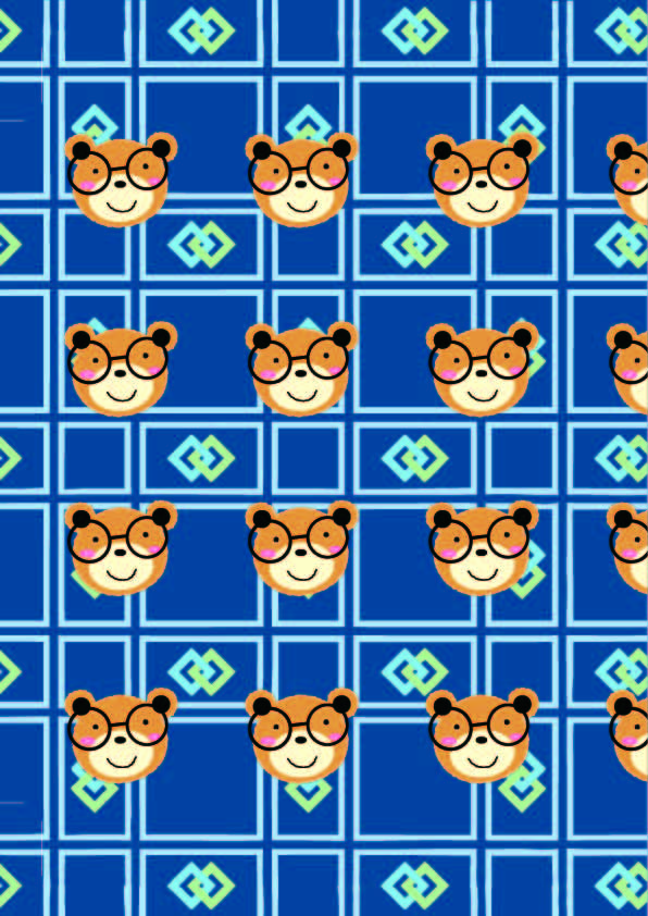 POP花型网 » 几何线条格子卡通熊印花矢量图服装纺织数码印花花型素材
