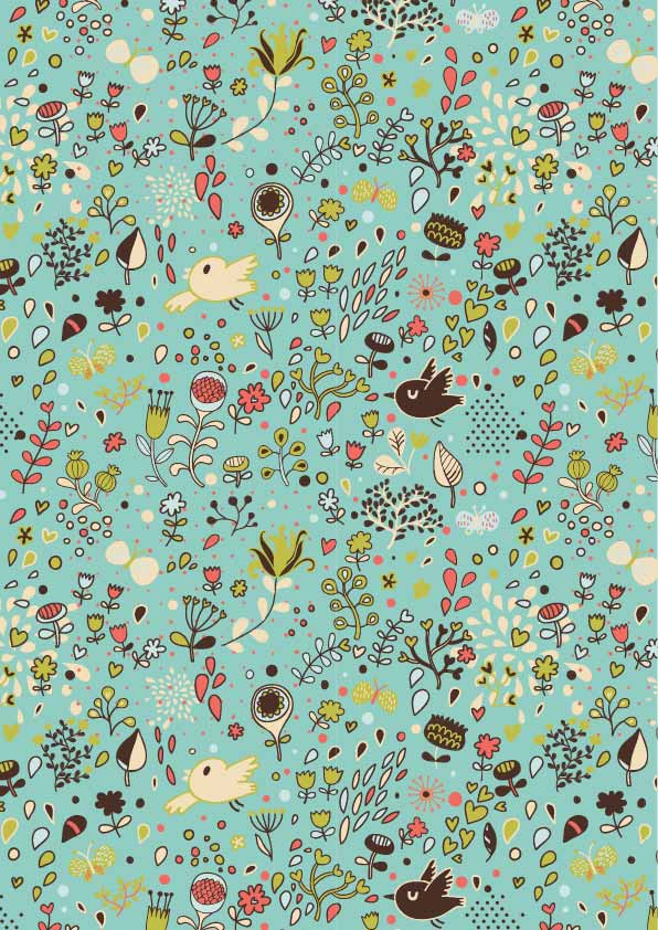 POP花型网 » 卡通植物花卉飞鸟印花矢量图服装纺织数码印花花型素材