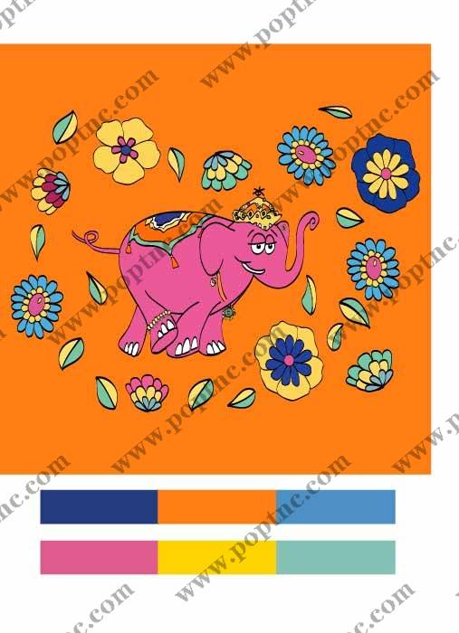 POP花型网 » 卡通植物花卉动物大象印花矢量图服装裁片T恤烫图印花花型素材