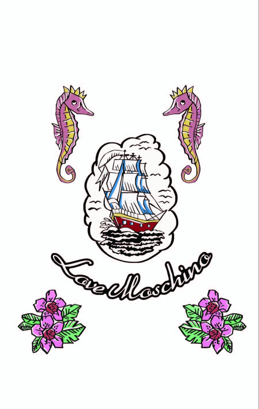 POP花型网 » 卡通动物海马帆船花朵字母印花矢量图服装裁片T恤烫图印花花型素材