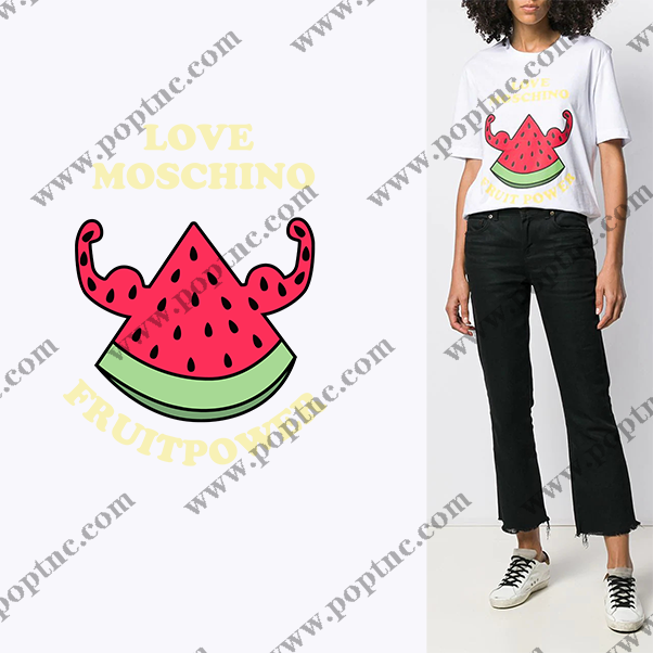 POP花型网 » 卡通图案西瓜字母MOSCHINO服装裁片T恤烫图印花花型素材