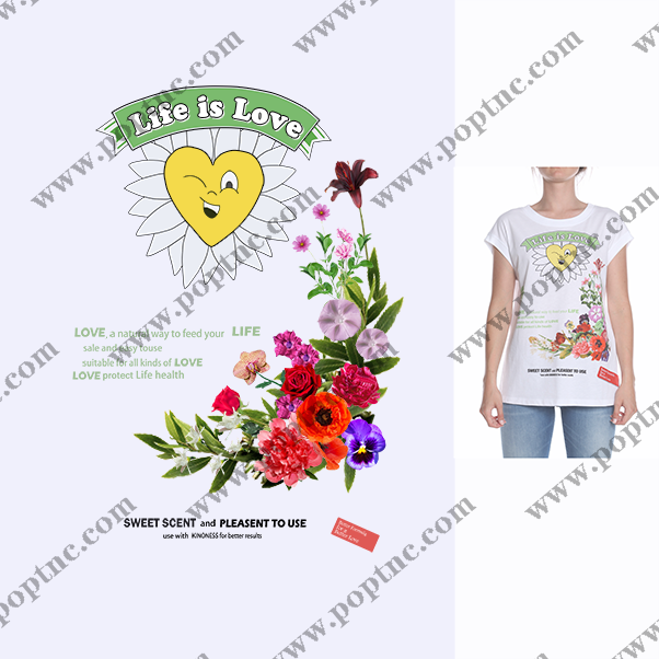 POP花型网 » 植物花朵爱心邹菊字母印花矢量图服装裁片T恤烫图印花花型素材