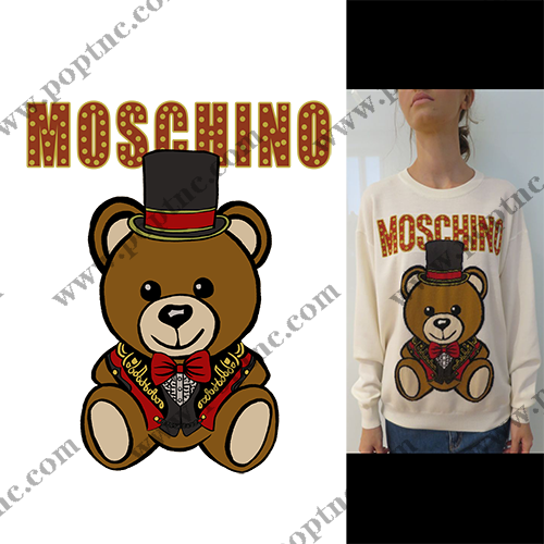 POP花型网 » 卡通熊潮牌字母MOSCHINO印花矢量图服装裁片T恤烫图印花花型素材