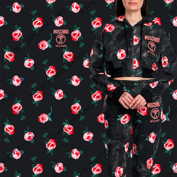 POP花型网 » 植物玫瑰花潮牌MOSCHINO字母印花矢量图服装纺织数码印花花型素材