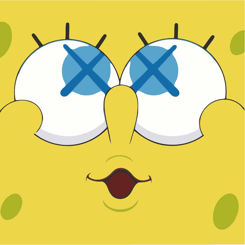 POP花型网 » 潮牌KAWS海绵宝宝图案印花矢量图服装裁片T恤烫图印花花型素材