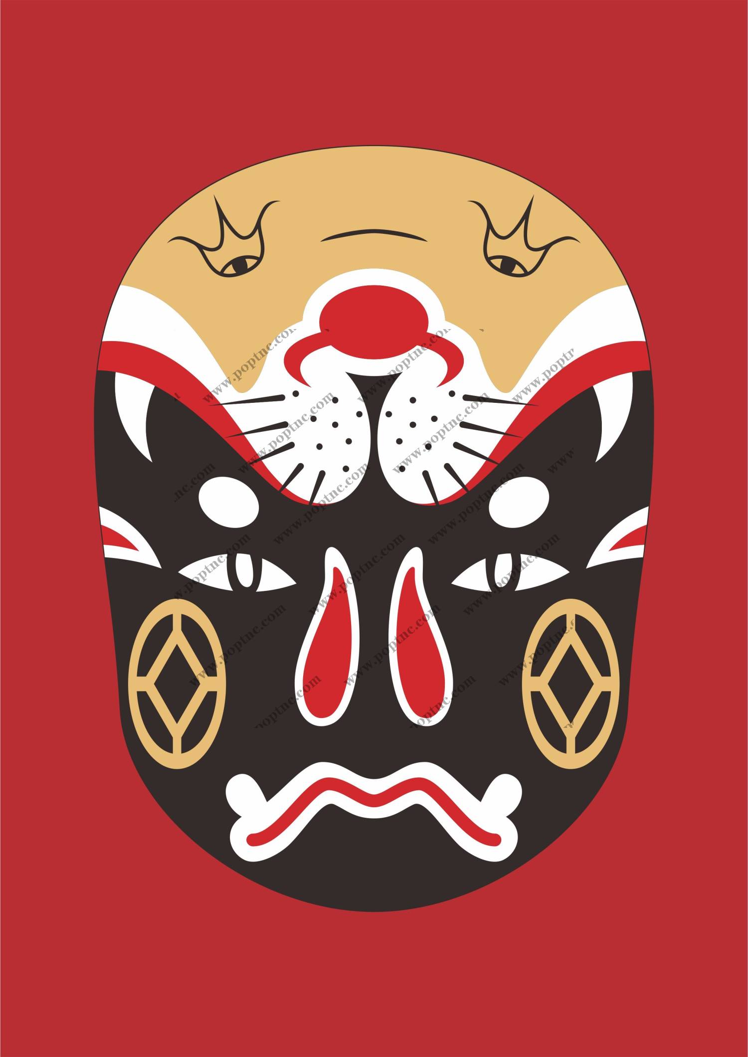 POP花型网 » 传统文化京剧脸谱印花矢量图服装裁片T恤烫图印花花型素材