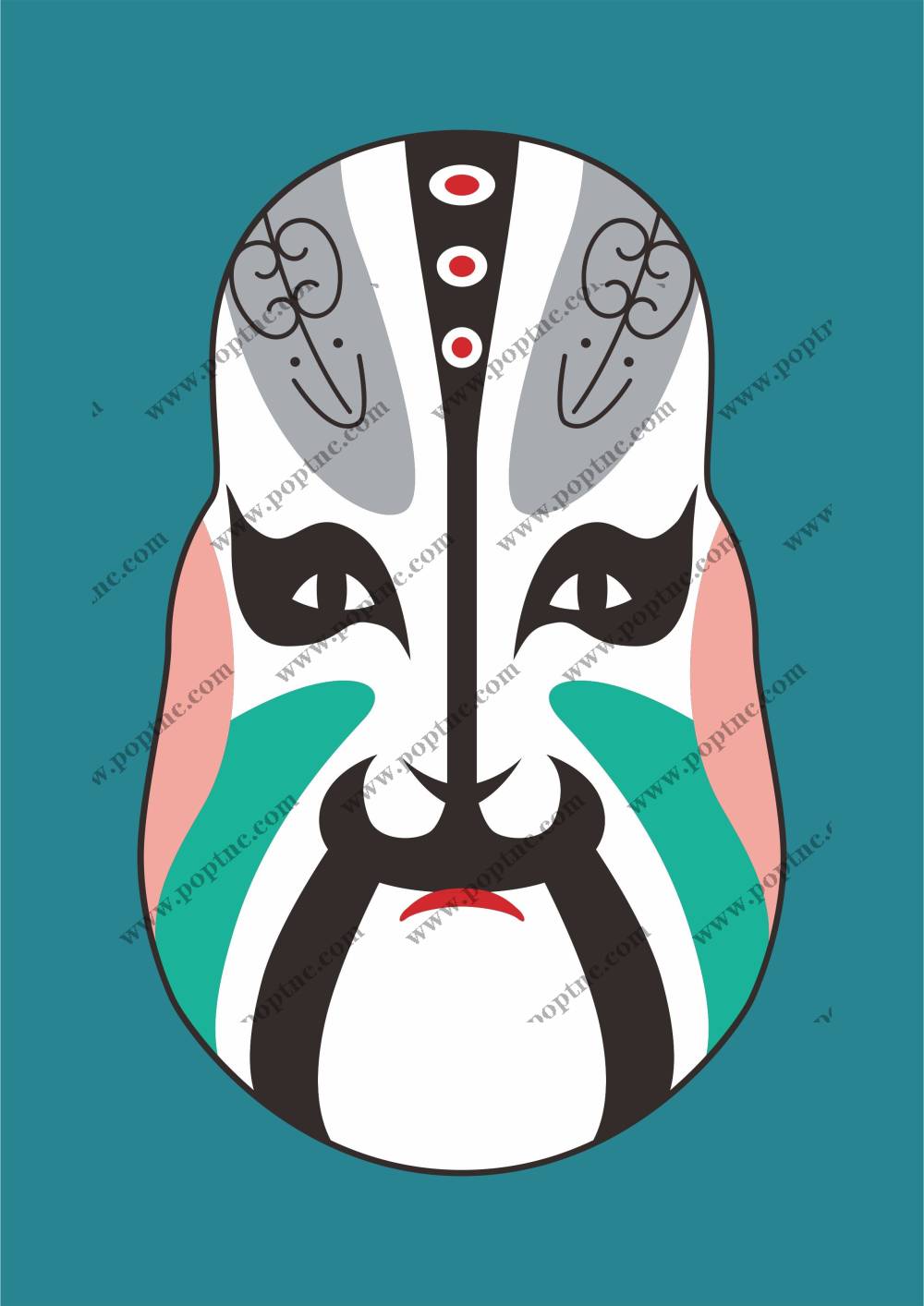 POP花型网 » 传统文化京剧脸谱印花矢量图服装裁片T恤烫图印花花型素材