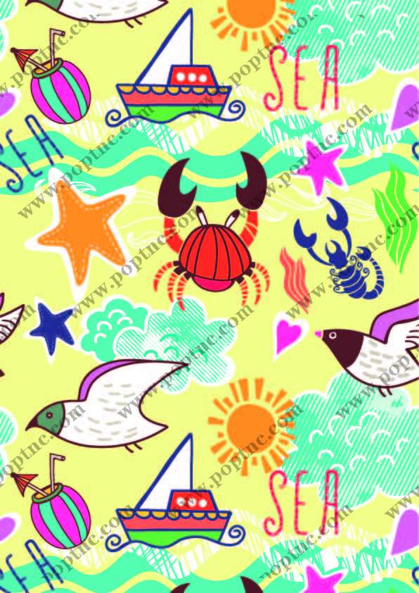 POP花型网 » 卡通海洋风螃蟹海星帆船印花矢量图服装纺织数码印花花型素材