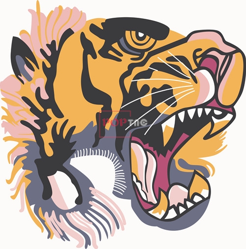 POP花型网 » 卡通动物老虎头印花矢量图服装裁片T恤烫图印花花型素材