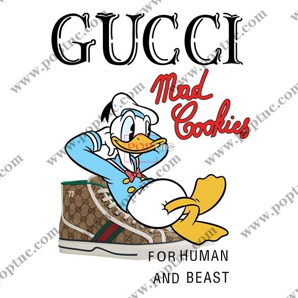 POP花型网 » 卡通动漫唐老鸭潮牌字母GUCCI印花图案服装裁片T恤卫衣烫图印花花型素材