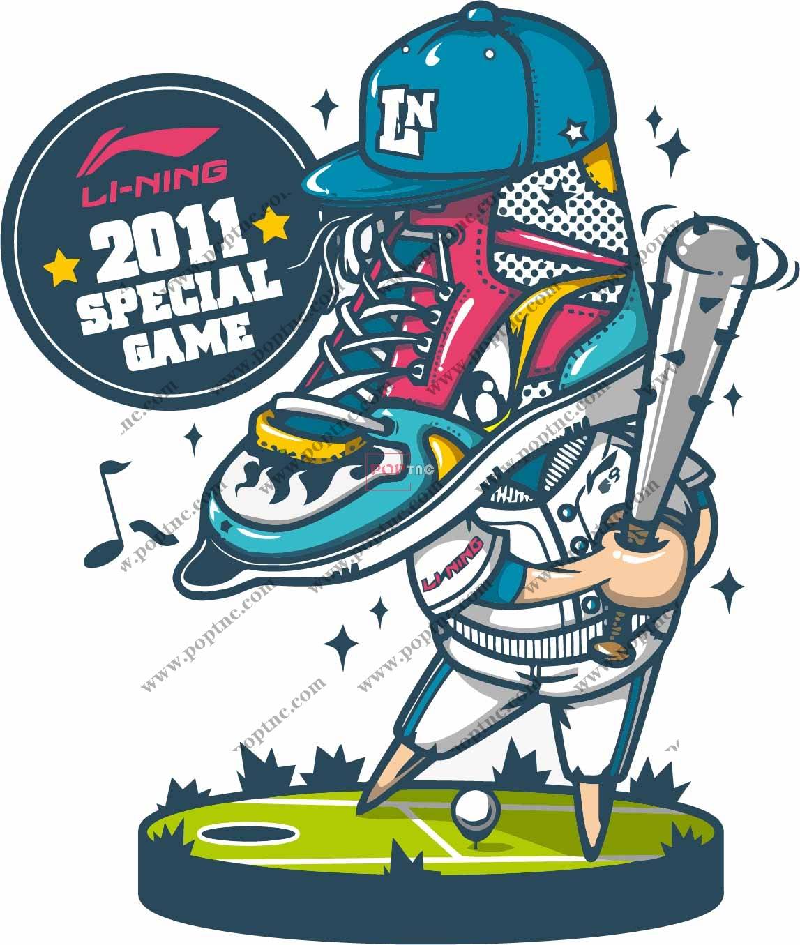 POP花型网 » 卡通动漫李宁棒球嘻哈风印花图案服装裁片T恤卫衣烫图印花花型素材