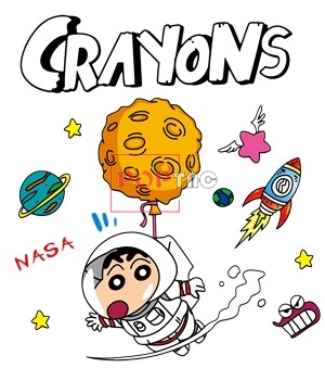 卡通动漫蜡笔小新太空人火箭字母印花图案服装裁片T恤卫衣烫图印花花型素材