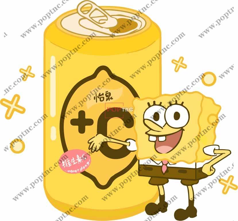 卡通动漫海绵宝宝怡泉联名款印花图案服装裁片T恤卫衣烫图印花花型素材
