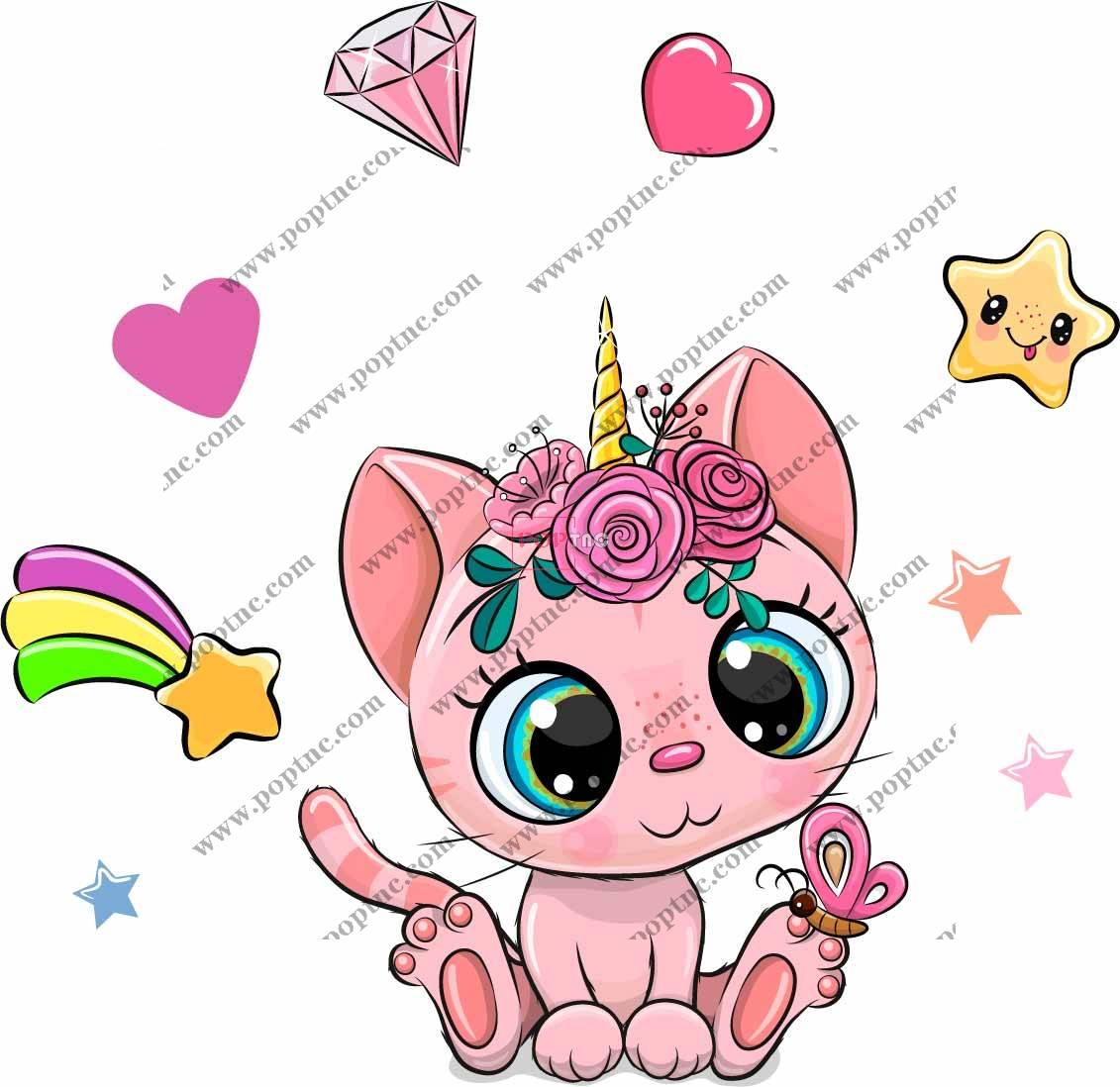 POP花型网 » 卡通动物猫咪独角兽印花图案服装裁片T恤卫衣烫图印花花型素材