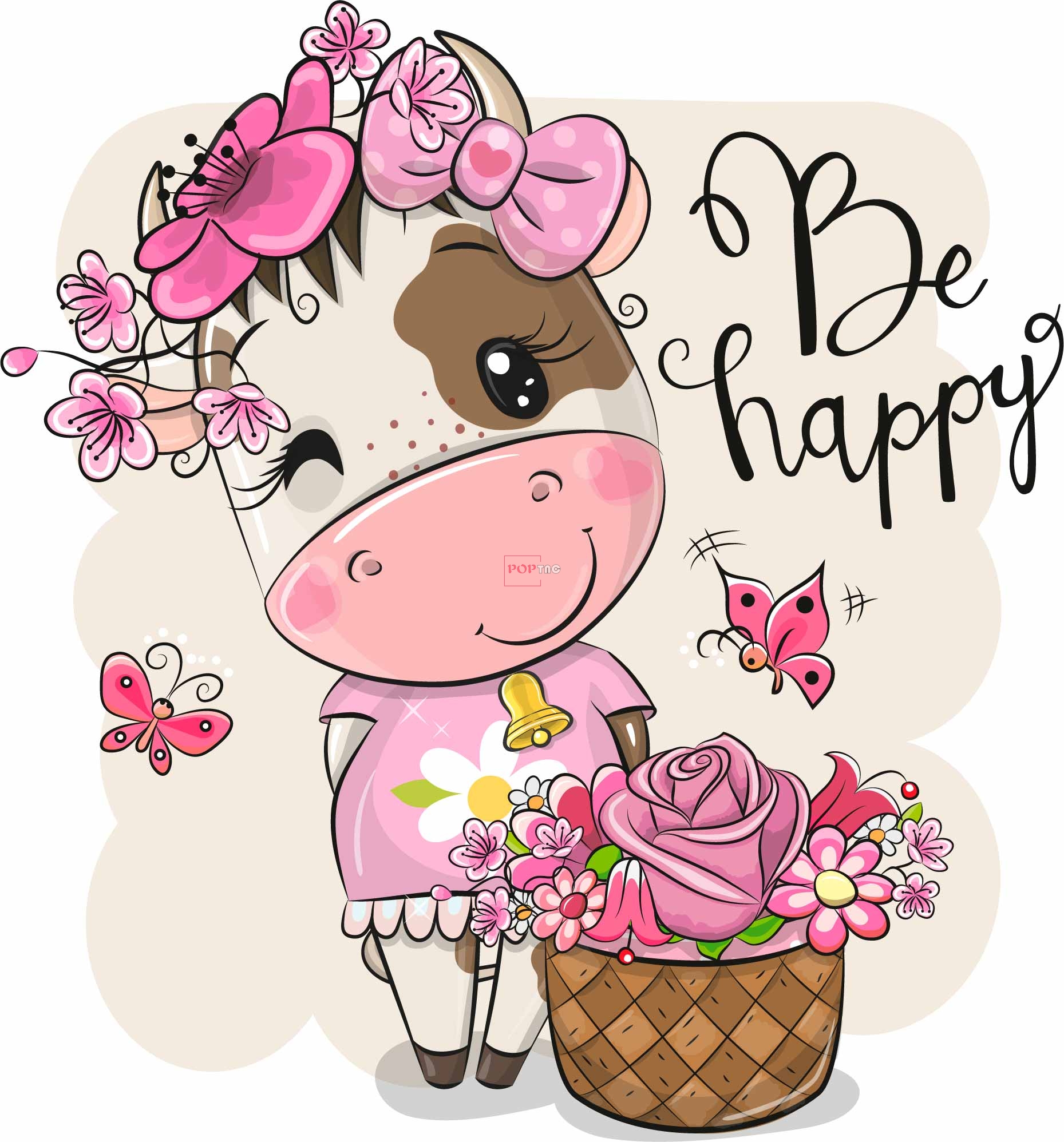 POP花型网 » 卡通动物小牛蝴蝶字母印花图案服装裁片T恤卫衣烫图印花花型素材
