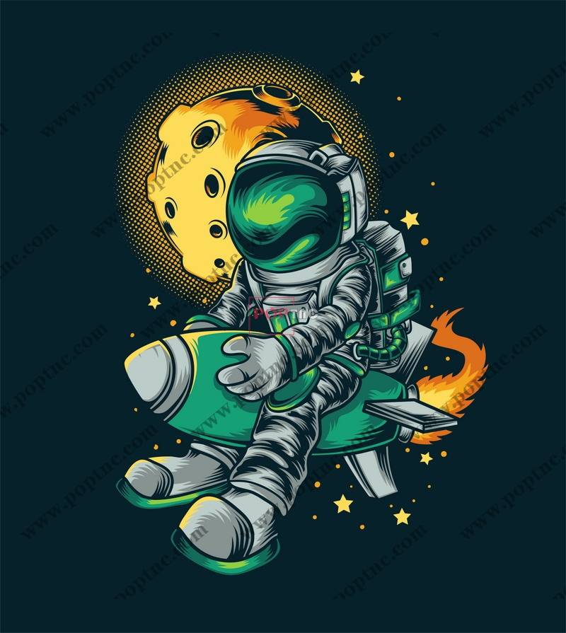 POP花型网 » 卡通太空人火箭印花图案服装裁片T恤卫衣烫图印花花型素材