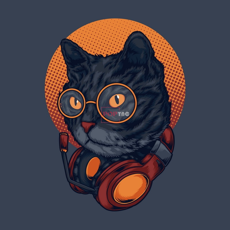 POP花型网 » 卡通猫咪耳机印花图案服装裁片T恤卫衣烫图印花花型素材