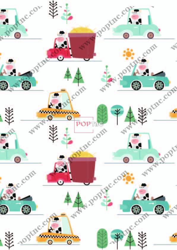 POP花型网 » 卡通奶牛汽车印花图案服装纺织数码印花花型素材