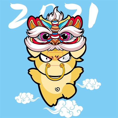 POP花型网 » 国潮舞狮卡通牛印花图案服装裁片T恤卫衣烫图印花花型素材