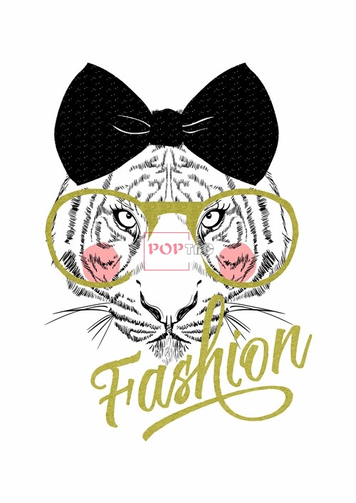 POP花型网 » 卡通动物老虎蝴蝶结字母印花图案服装裁片T恤卫衣烫图印花花型素材