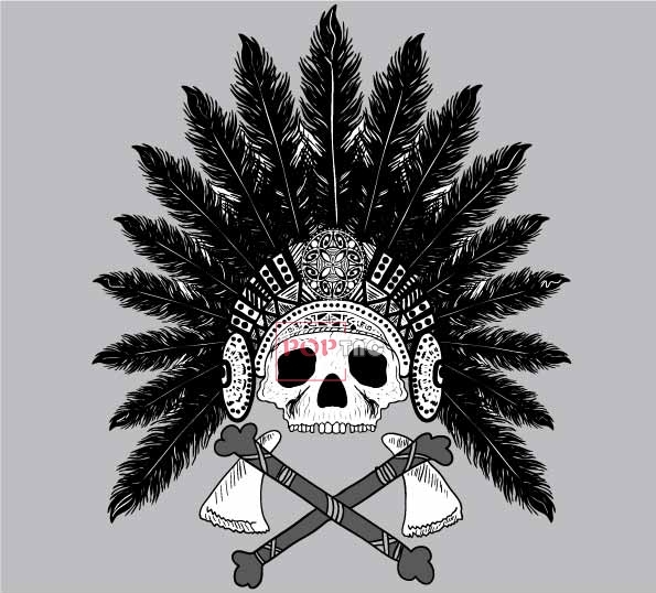 POP花型网 » 几何骷髅头羽毛印花图案服装裁片T恤卫衣烫图印花花型素材