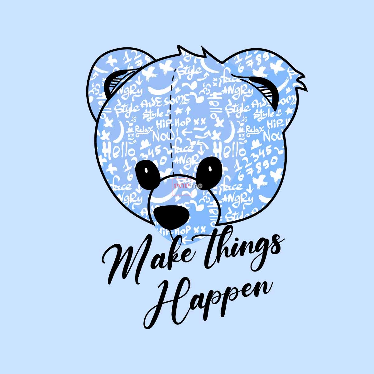 POP花型网 » 卡通动物熊字母印花图案服装裁片T恤卫衣烫图印花花型素材