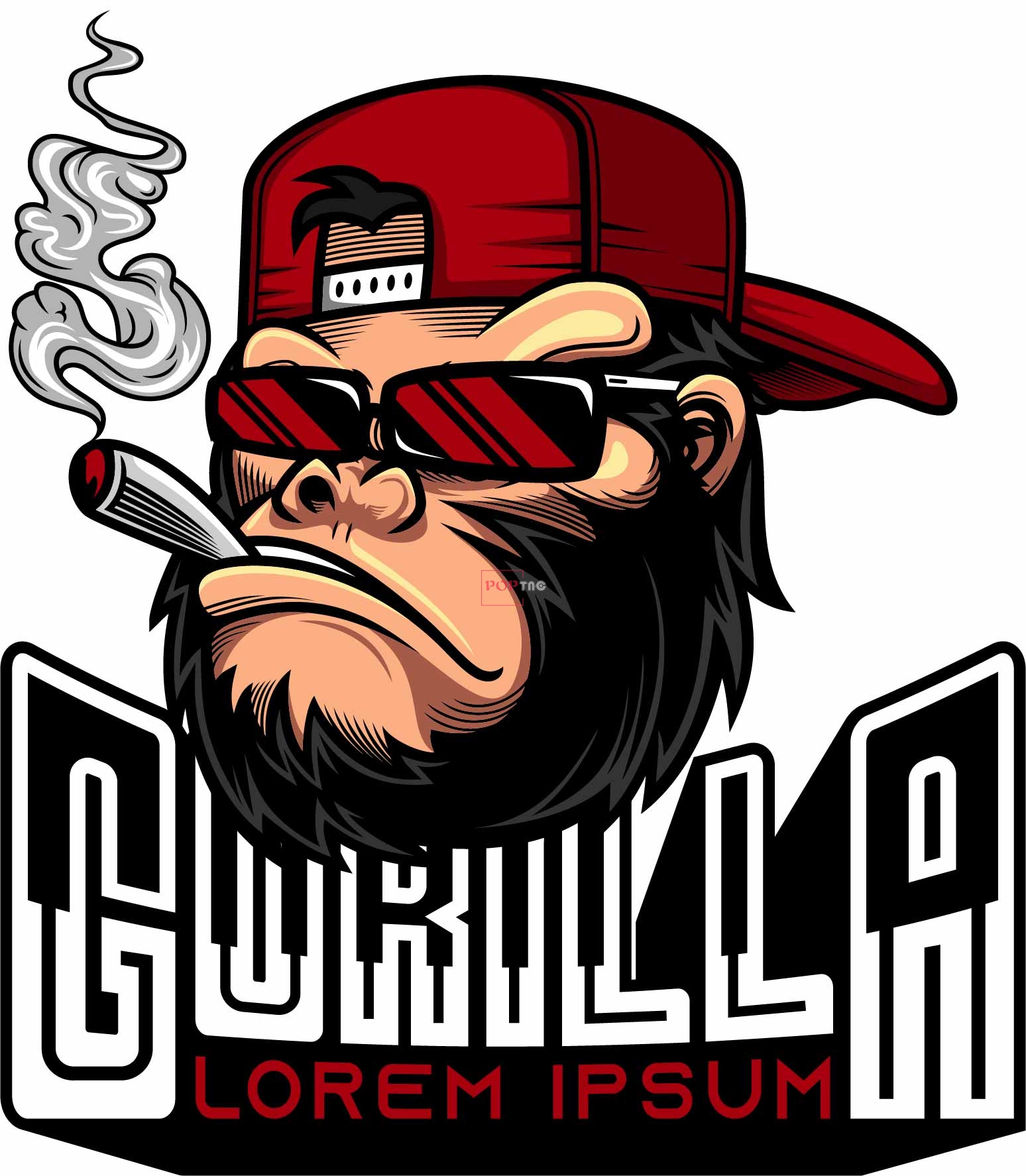 POP花型网 » 卡通动物抽烟大猩猩字母印花图案服装裁片T恤卫衣烫图印花花型素材