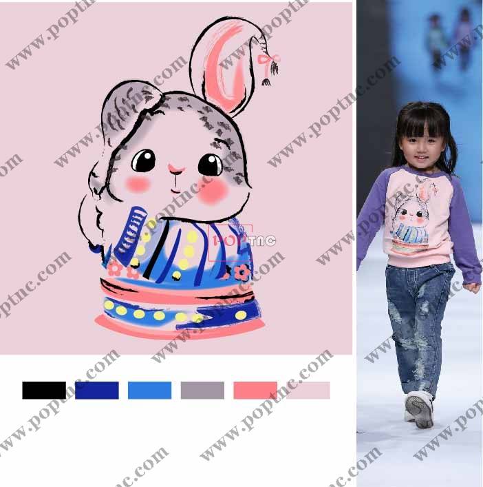 POP花型网 » 卡通动物兔子印花图案服装裁片T恤卫衣烫图印花花型素材