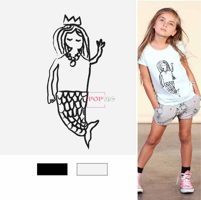 POP花型网 » 手绘卡通美人鱼印花图案服装裁片T恤卫衣烫图印花花型素材