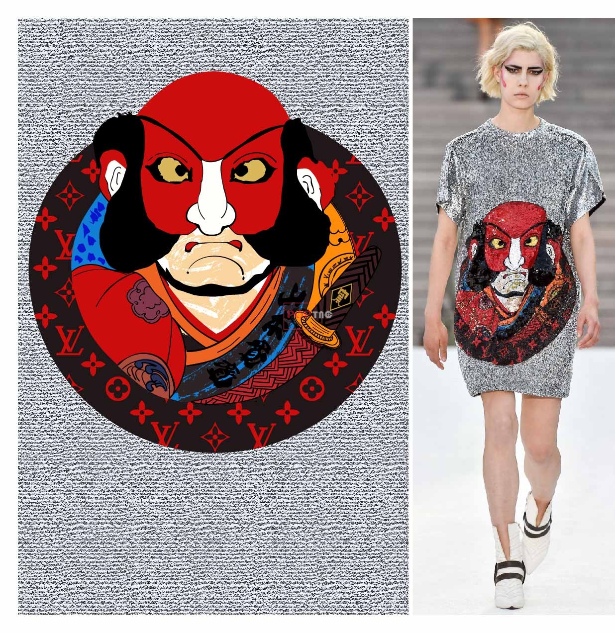 POP花型网 » 人物图案潮牌LV花纹印花服装裁片T恤卫衣烫图印花花型素材