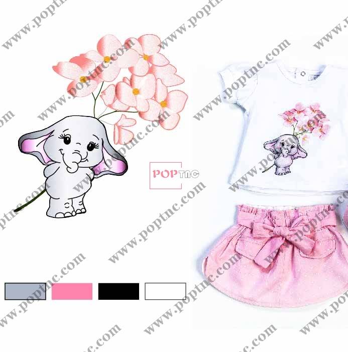 POP花型网 » 卡通动物大象植物花朵印花图案服装裁片T恤卫衣烫图印花花型素材