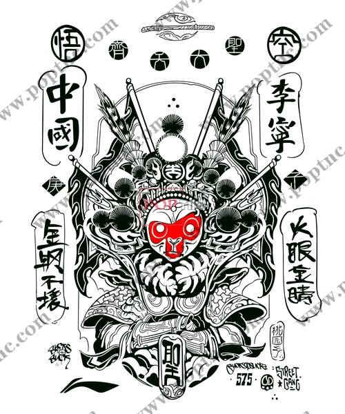 POP花型网 » 中国风戏剧悟空印花图案服装裁片T恤卫衣烫图印花花型素材
