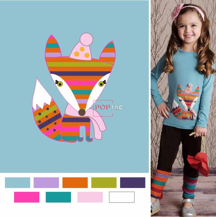 POP花型网 » 卡通动物狐狸印花图案服装裁片T恤卫衣烫图印花花型素材